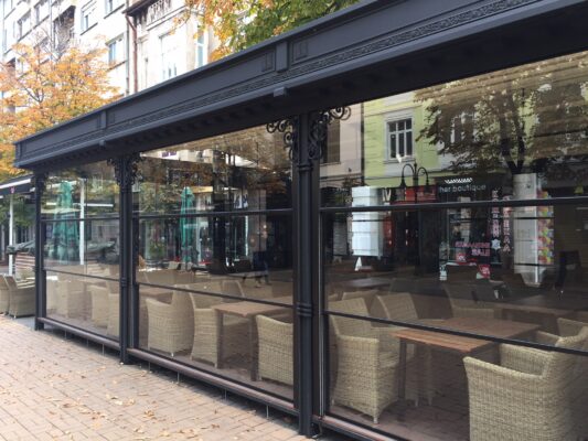 • Ticari uygulama alanlarında geleneksel hareketli alüminyum cam sistemlerine yeni nesil bir çözüm sunar. Farklı alüminyum ve cam rengi seçenekleri ile mekanların bütünlüğünü bozmadan işletmelere hacim ve değer kazandırır. Kış sezonunda cam paneller kapatıldığında herhangibi bir ısıtma sistemi ile ortam sıcaklığı korunabilir.