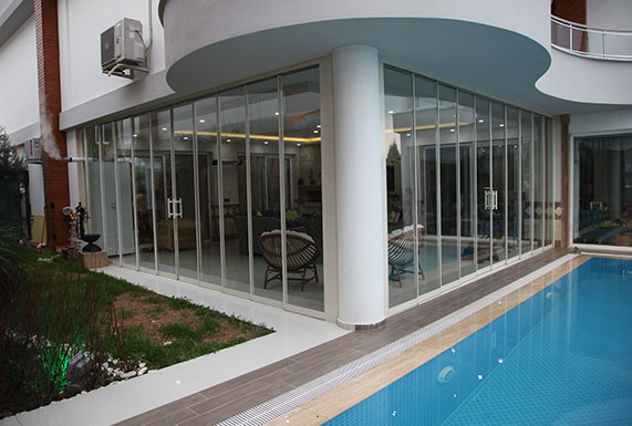 Üçlü ve beşli ray seçeneği ile daha geniş açıklıklara uygulanabilir. Balkon, kış bahçesi, ofis, cafe gibi mekanlarda yeni yaşam alanı oluşturmak için en ideal sistemdir.